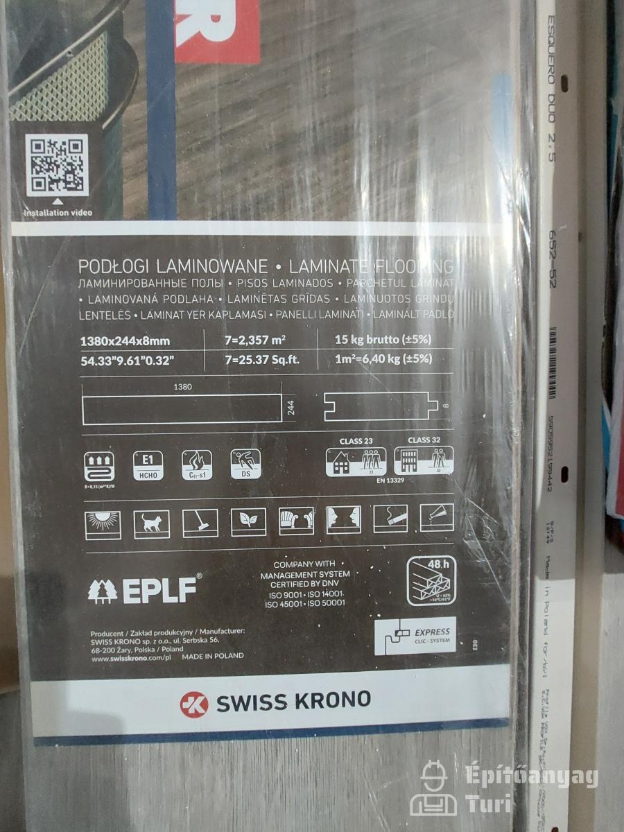 5,5 m2 tölgy laminált padló 1380*244*8 mm + 7,5 m színazonos Szegő léc (Kábel csatornás) + 1,6 mm + 3mm bontatlan padló alátét 12m2 aqua stop 6m2.