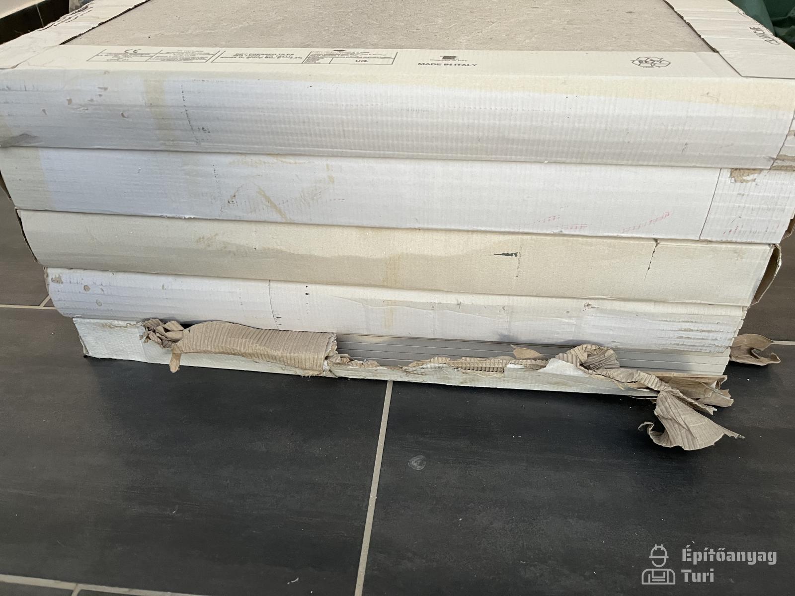 - 5 doboz, összesen 5,4 m2 (1 dobozban 6 db található, ami 1,08 m2; az egyik dobozon a papír sèrült)