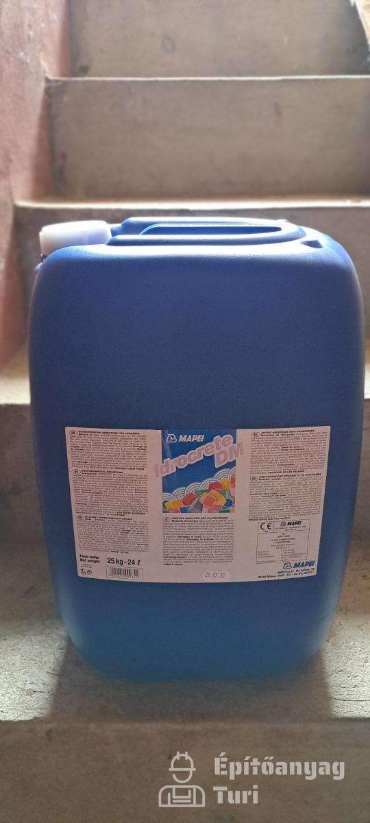 Betonozásból kimaradt kb. 23 L vízzárást fokozó adalék. Keríteskőhöz mészkő kiviragzás ellen.